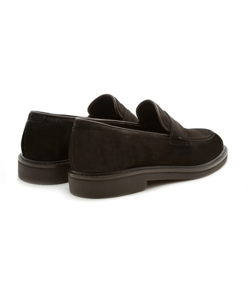 Herenloafer van premium kalfssuèdeleer Binnenvoering van echt leer Inlegzool van echt kalfsleer met schuim Echte matte rubberen gestikte zool - bruine kleur Handgemaakt in Italië