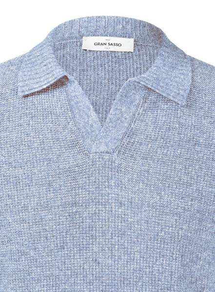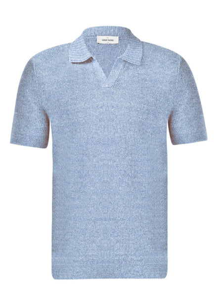 Polo met een Riva kraag, in een verfijnde mix van linnen en katoen, perfect voor warme dagen. Dit gebreide polo combineert natuurlijke vezels voor optimale ademend vermogen en comfort.